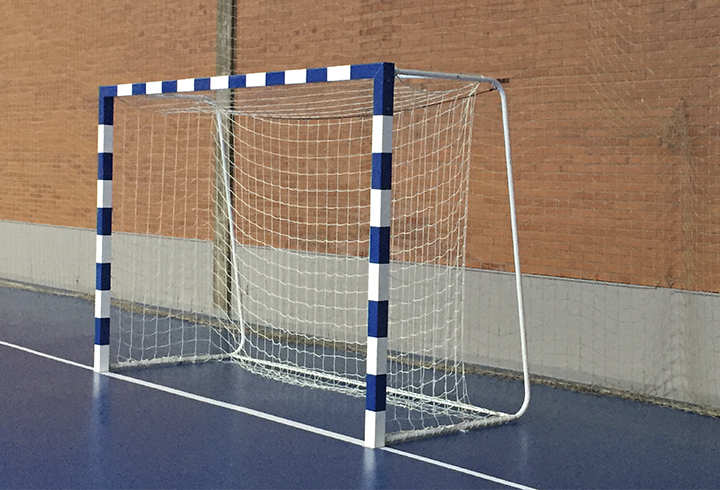 Made in accordance with regulation UNE-EN 749. Posts and crossbar in aluminium; metal painted in white and red (other colours available on request). The posts and crossbars in the aluminium models are joined together using metal brackets (60 x 40 mm). The metal profile type is supplied welded. The frames are in 80 x 80 mm square cross-section, with rounded edges. Dimensions: 3.00 x 2.00 x 1,00/1,40 m Fixed or hinged back supports with side openings for anchoring (prevention of tipping) in 32 mm rounded galvanized steel profile. With the version that folds against the wall, the hinged section is made from 45 x 45 x 2 mm squared pipe, with wheels to make it easier to fold. PVC hooks to attach the net to the frame. Price per set (2 units w/o nets).